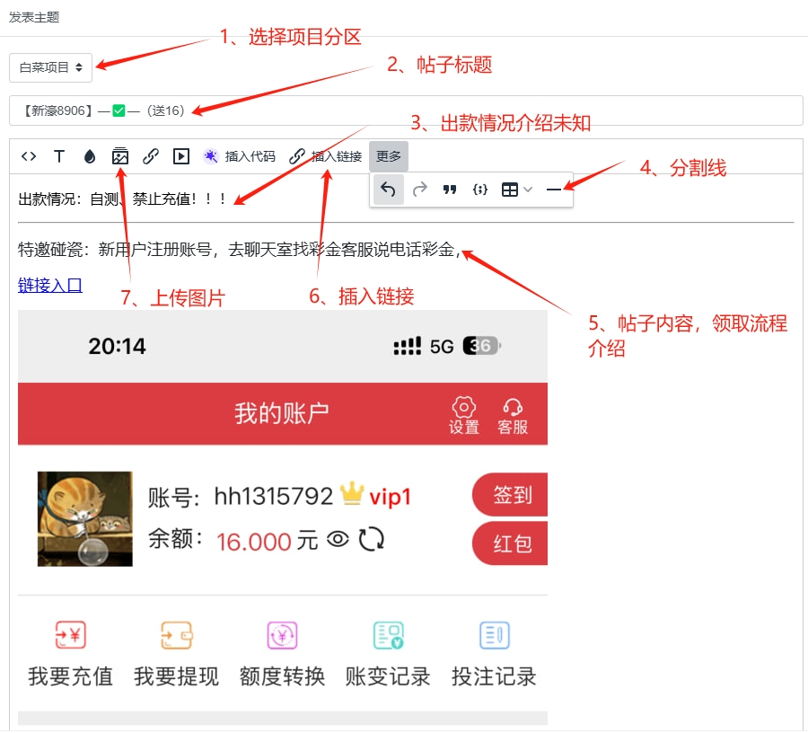 下面开始发帖规范教程教学: