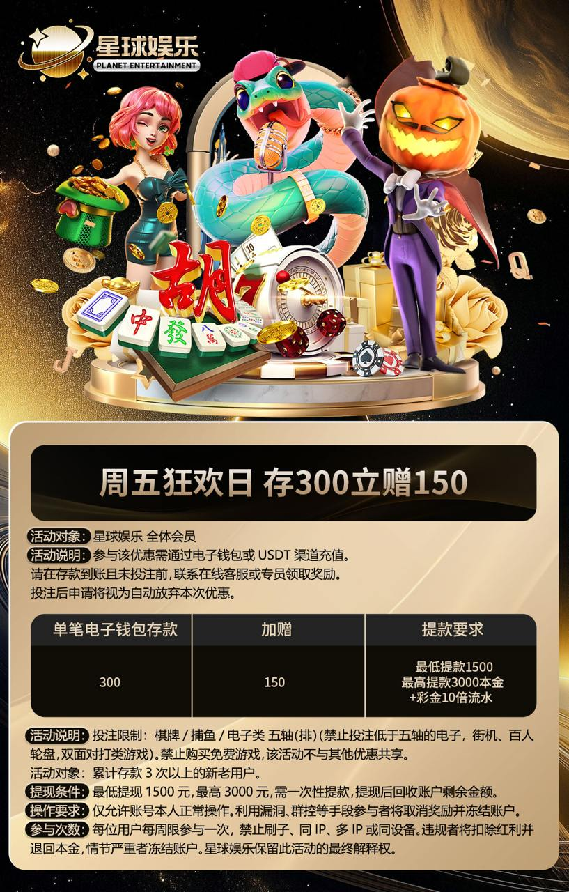每个星期五即可申请300+150活动,本彩10倍流水,仅限五轴电子,禁止买免费,最提提1500最高3000,具体规则看下图