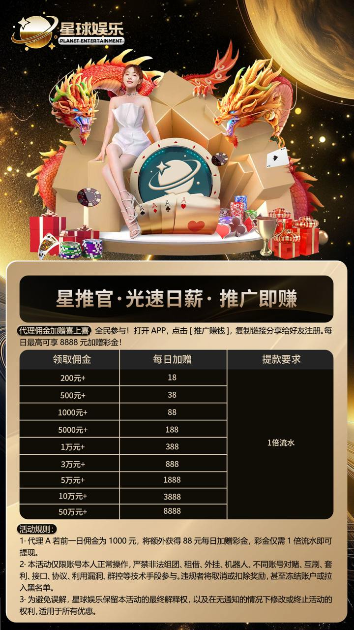 可推可玩,每万流水返佣100起步,下级推广下级,可获得下级佣金的50%,不扣下级佣金